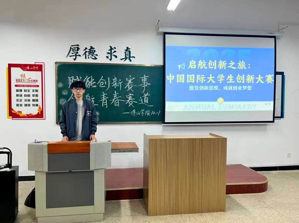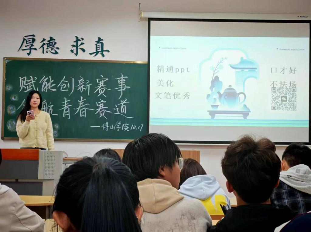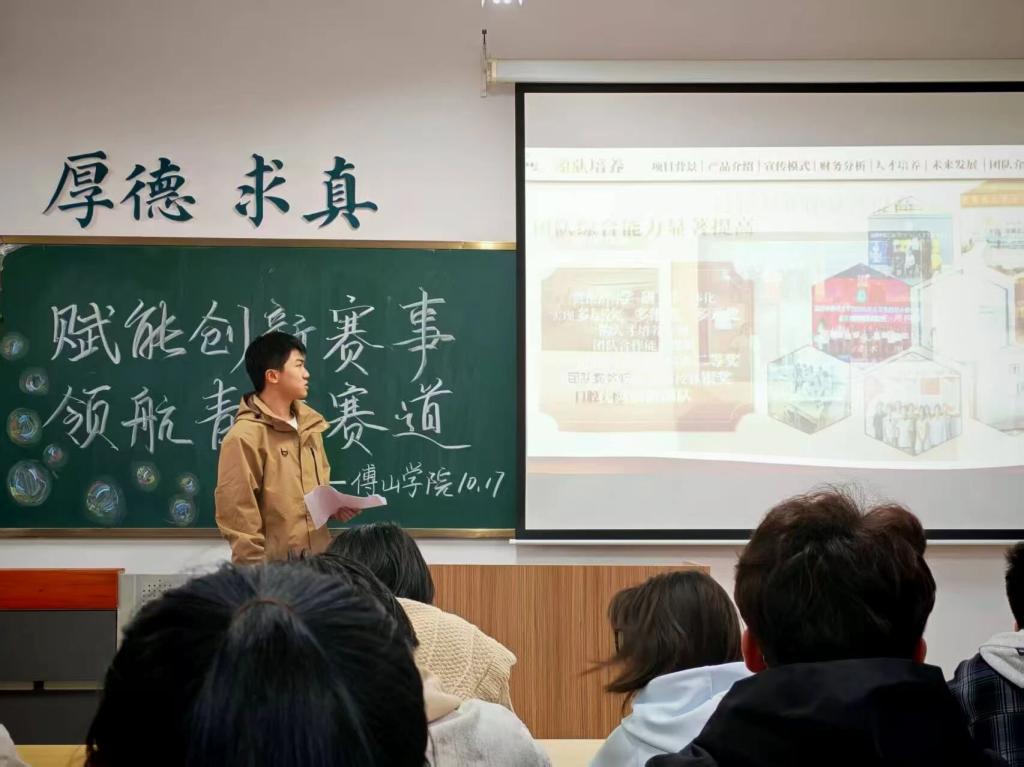本次宣讲由公司创新创业服务中心23级一体化2班董顺发同学主讲。他结合自身参赛经历与项目管理经验,从项目负责人需具备的统筹规划、资源协调能力切入,详细解读了赛事流程规范、材料准备要点,并围绕专利申请的步骤、技巧及其对项目发展与个人成长的重要性展开阐述,鼓励同学们以赛事为契机,在创新实践中实现专业能力与综合素养的双重提升。