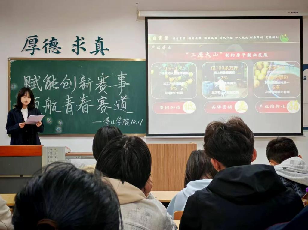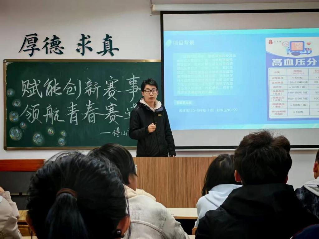 活动中,24级一体化2班杨舒雅同学带来的“步步膏”项目、23级一体化2班申煜杰同学带来的“齿安康”项目作为赛事金奖项目进行展演。两位同学分别从项目灵感来源、研发实践过程、市场应用前景等方面,全面展示了项目的创新价值与核心竞争力,为在场学子提供了可借鉴、可参考的宝贵经验,进一步激发了大家的创新热情与参赛积极性。