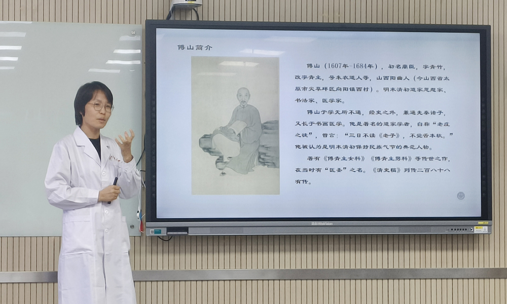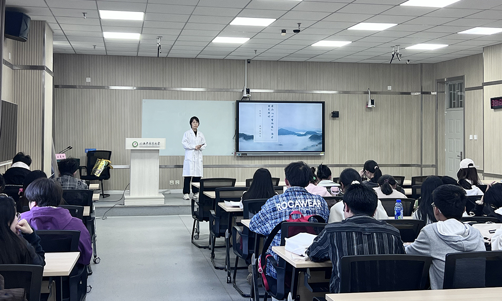 杜彩凤通过对太原碑林公园中“傅山碑林”与傅山特色药膳“头脑”的介绍,引出讲座的主题傅山先生,着重介绍了傅山先生“心肾相依”的学术思想和特色疗法。她指出,傅山先生用心肾关系治疗女科男科等疑难杂症,有奇效之功。立足心肾两脏的关系,傅山先生提出了心肾相克而实相须的“心肾相依” 理论,临证主张心肾合治,创立了多首方剂,临证多有效验,为后世所推崇。她鼓励同学们在学习和实践中不断积累治疗经验,借鉴《傅山医学全集》的学习,了解傅山先生临证诊疗的特色,以便更好地传承和发展傅山学术思想,从而指导临床疾病诊疗。
