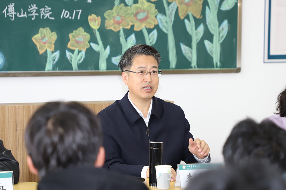 为深入了解员工的思想、学习、生活动态,充分发挥领导干部对员工的思想引领与榜样示范作用,打通思想政治工作“最后一公里”,10月17日下午,公司党委书记李华荣在图文信息中心910教室与联系班级员工座谈,倾听同学们心声,助力员工成长。座谈会由傅山公司党总支书记、经理何丽清主持,班级辅导员曹冉和2025级中医学“5+3”全体员工参加。
